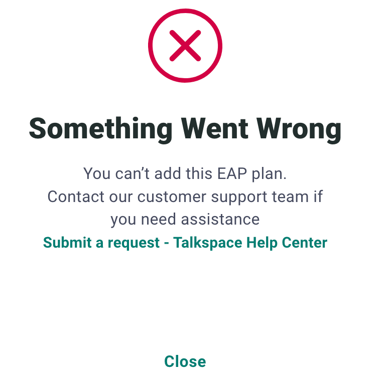 ❌ You already have a Talkspace plan under the same EAP benefits and can't use those benefits again.