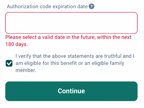 If you receive the “One or more fields are missing or invalid” or “Auth code is invalid” message when applying your benefits, it could mean one of the following:
