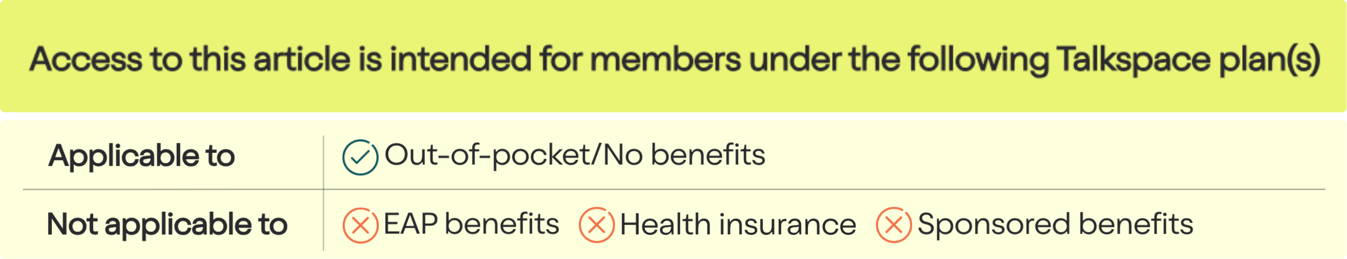 Talkspace Psychiatry connects you with a licensed psychiatric provider who can conduct evaluations, prescribe medication, and provide ongoing support for your mental well-being. This guide explains how psychiatry sessions work when you purchase a psychiatry plan out-of-pocket.